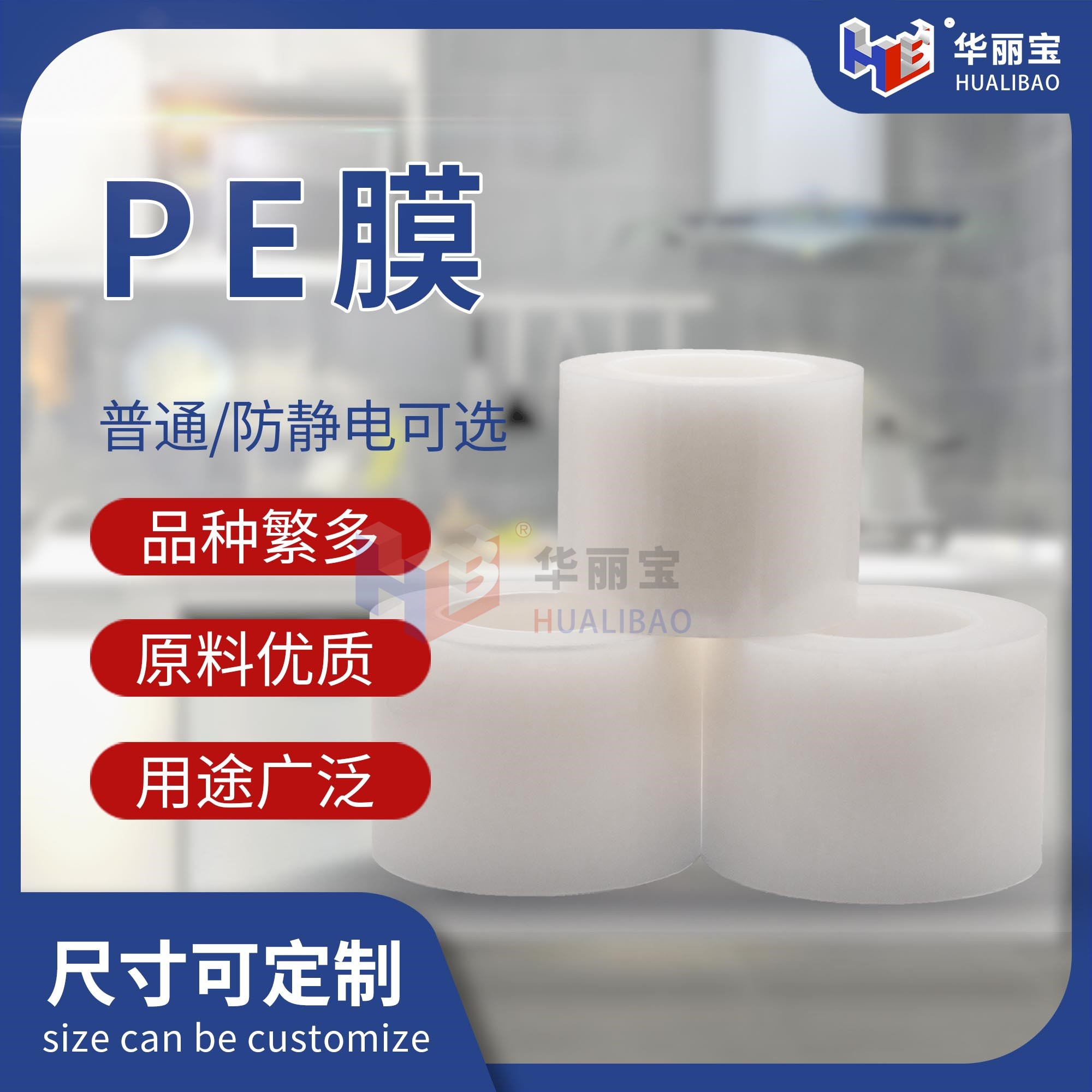 广东华丽宝实业有限公司,一家生产PE保护膜、PET保护膜、磨砂膜、BOPP保护膜、网纹膜、CPP保护膜、铝材保护膜、不锈钢保护膜、家具膜、铝型材保护膜、静电膜、地毯膜、PE耐高温保护膜、转移膜系列、定位纸等适用各种产品表面保护,品种齐全,质量保证。